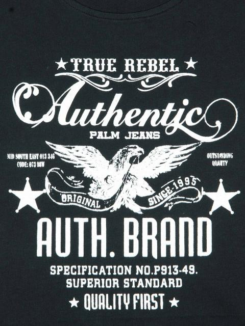Black round neck T-shirt, has short sleeves and graphic print on the front