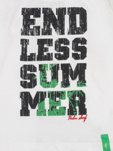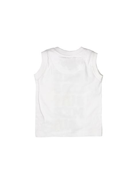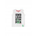 White round neck T-shirt made of 100% cotton, sleeveless, has graphic print on the front