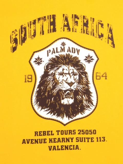 Yellow round neck T-shirt, has short sleeves and South Africa print on the chest