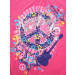 Dark pink top, has a round neck, short sleeves and graphic print on the front