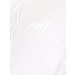 White jacket made of 100% polyester, has long sleeves with ribbed cuffs that has an upraised design on the ribbing, mock neck with drawstring, zippered front placket, zippered insert pockets on the sides, white pop art rubber print on the left side that flows to the back, brand tab on the left hem, ribbed hemline with upraised design on the ribbing and iconic three stipes on the sleeves in blue strips
