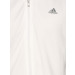 White high collar jacket made of PES, with a broad hood, zipper front placket, has adidas patent 3-Stripes running down the full sleeves and welt pockets on the sides