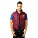 Red sleeveless jacket made of 100% polyester, has a mock collar, zippered front closure, appliqued branding on the left chest and two front pockets