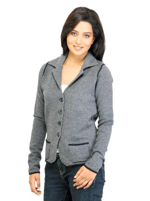 This knitted jacket from united colors of benetton for women is the perfect piece for a lady-like winter look. The herringbone pattern and peaked collar give the jacket an old fashioned charm while the soft knitted fabric and shoulder seam detail keeps it modern. Pair it with form fitting jeans, a fitted tee and ankle high boots. Add a vibrant scarf to splash some colour in your ensemble