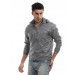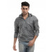 Grey, wind cheater jacket, mock collar, removable hood with velcro closure and elasticated drawstring, full length zipper closure in the front, long sleeves with elasticated cuffs, brand print at back and above right hem, drawstring at both sides of hem