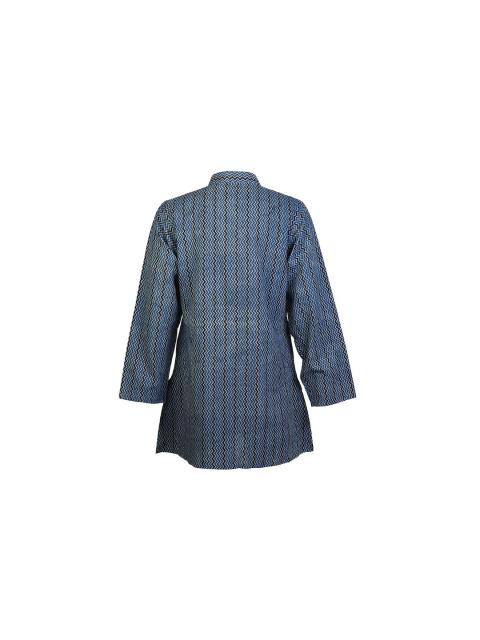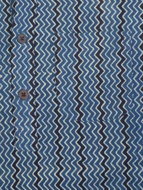 Blue and black printed kurta, made of cotton fabric, has a round neck, long sleeves, buttoned chest placket and slit side seams