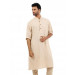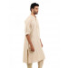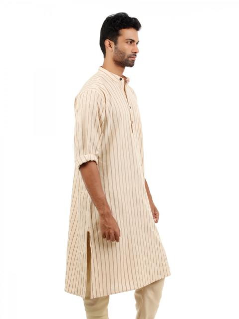 Biege striped nizam long kurta, has a mandarin collar, chest button placket, long sleeves, a patch pocket on the left chest and side slits
