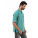Green striped arham short kurta, has a mandarin collar, chest button placket, long sleeves, a patch pocket on the left chest and side slits