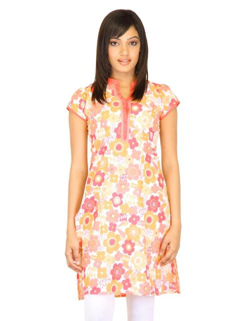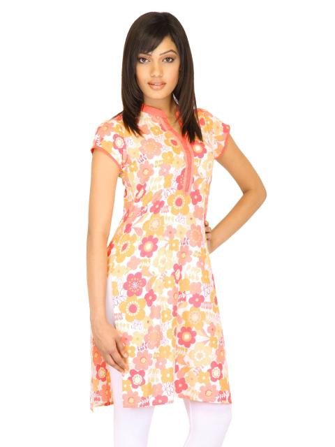Upgrade your casual look with this fun kurta from vishudh! The peach and pink floral print gives a vibrant look, while the cotton fabric keeps you fresh and comfortable all day long. Team it with leggings or a white loose kameez and sandals for a chilled out look.