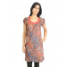 Blue and pink printed kurta made of 100% cotton, has a round neck with a border, is slightly pleated at the neck, has short puff sleeves and a vented hem