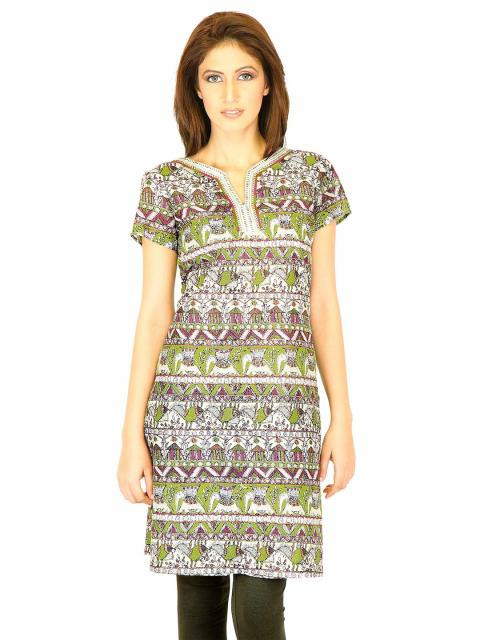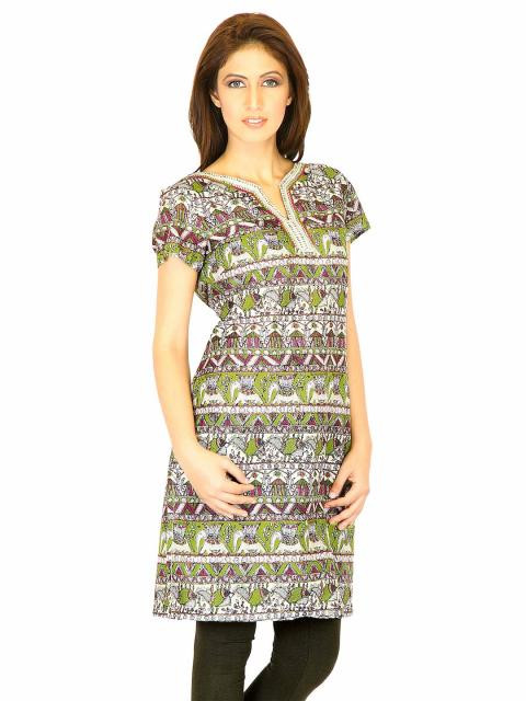 Ethnic is back with a bang with this printed kurta from w! Look ethnically hip in this stylish double V-neck kurta, while the pure cotton fabric keeps you absolutely fresh and comfortable through the day. Team it with leggings or a loose kameez, heeled slippers and chunky accessories for a chic look.