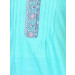 Sea green kurta made of 100% cotton, has short sleeves, keyhole neckline with a button closure, pin tucks from the neck that flare out at the waist, woven panel stitch on the chest, gathered print and a vented curved hem