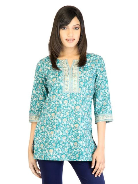 The inspiration for this kurti from aurelia for women is the retro-esque fusion of the uniquely ethnic with smart workwear. The label combines the quirky street style of Indian metros with classic, time-perfected silhouettes. This piece epitomizes how fashion, vintage styling and comfort unite to create the perfect Indian tunic. Those interested in colour blocking can wear this with bright contrasting capris or pants. Others who want to keep their look classic and chic can pair this with tonal leggings, and embellished slippers.