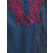 Blue woven kurti, has a mandarin collar with a split neckline, embroidery on the yoke, chest button placket, three fourth sleeves with mid button tabs and a curved hem