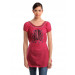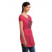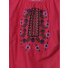 Woven pink kurti, has a round neck with embroidered smocking detail, embroidery on the chest, short puffed sleeves, elastication at the sides of the waist and a curved hem