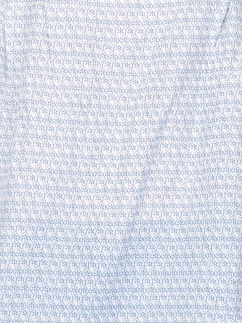 White printed kurta made of 100% cotton, with thre-quarter sleeves, has a square neckline with Hakoba style tape detailing off the arm panels and has split sides