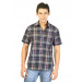 Grey, blue and red checked half-sleeve shirt made of 100% cotton, has two chest pockets, a full front buttoned placket, and a curved hemline