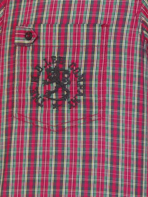 Red and blue checked shirt with yellow accents, made of 100% cotton, has half-sleeves, a chest pocket on the left with brand embroidery, a full length buttoned placket and a curved hemline