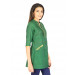 Green tunic top made of 100% Mangalgiri cotton, has three-quarter sleeves with yellow piping at the hem, pin tucked bib with yellow thread detailing, Mandarin collar with a buttoned chest placket, yellow piping along the placket and has two slit pockets with yellow piping and buttoned loops