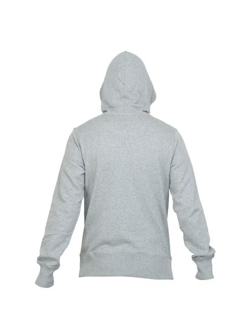 Grey hooded sweatshirt made of 100% cotton, hood with drawstrings, long sleeves with ribbed cuffs made of 97% cotton and 3% spandex, ribbed panels at the sides, two insert pockets with asymmetric openings, embroidered brand swoosh on the left chest