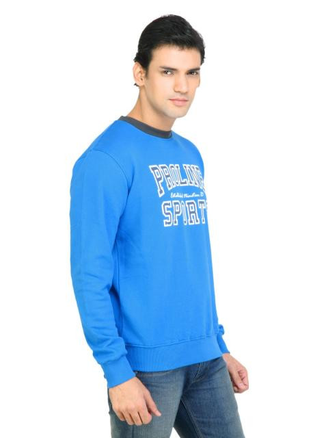 Blue knitted sweatshirt, has a round neck, long sleeves
