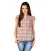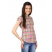 Pink and green check patterned shirt, has a spread collar with a split V neckline, a full buttoned placket, elastication at the sides of the waist for better Fit and a curved hem