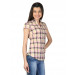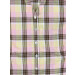 Pink, yellow and dark grey check patterned shirt, has a spread collar with a split V-neckline, a full buttoned placket, elastication at the sides of the waist and a curved hemline.