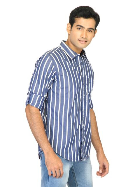 Stripes that add immense attitude to your wardrobe is what basics brings into your life. The full sleeves are sure to keep the winter chill at bay, and you can roll them up to suit your style. Team this shirt with jeans and sports shoes for unparalleled cool.