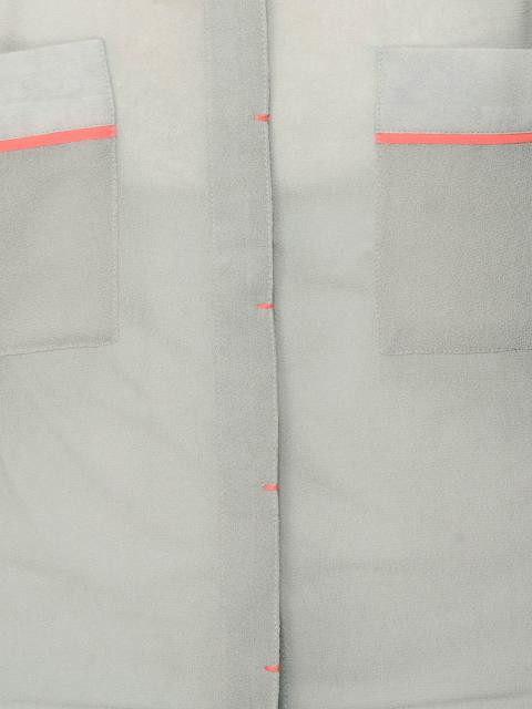 Grey shirt made of blended fabric, has a round neckline with contrast panelling, long sleeves with mid button tabs, pockets on the front with contrast panelling, a full buttoned placket, contrast panelling on the shoulder, inverted pleat at the back and a curved hem