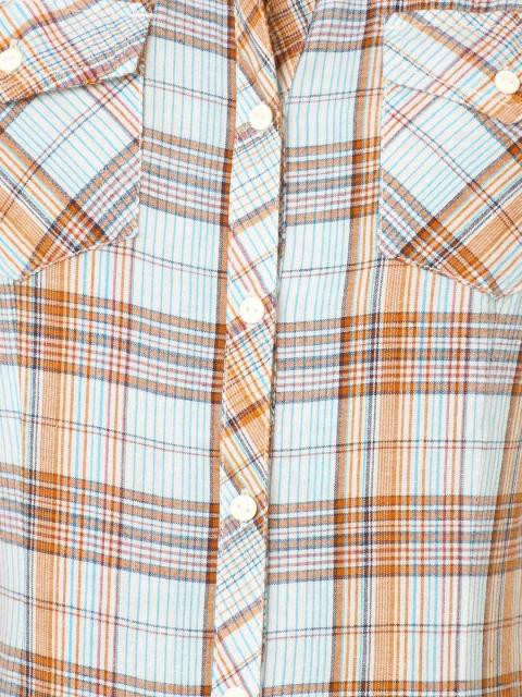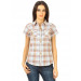 White shirt with orange checks and blue accents, made of 100% cotton, tipped collar with full front buttoned placket, two flap buttoned chest pockets, short sleeves and curved hemline