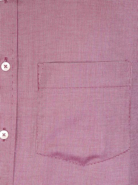 Red check shirt made of 100% cotton, has a tipped collar and full front button placket, full cuff sleeves, patch pocket on left chest and a curved hem
