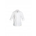 White shirt has embroidery on the left chest, long sleeves with buttoned cuffs and a curved hem