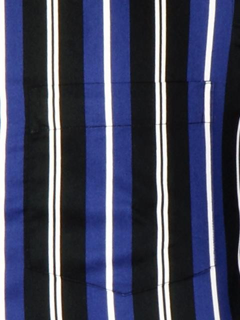 Full sleeves shirt with black and dark blue stripes and white accents, made of 100% cotton, has a patch pocket on the left chest and full front buttoned placket