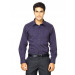 Purple and grey striped shirt, has a spread collar, full buttoned placket, long sleeves with buttoned cuffs, patch pocket on left chest and curved hem