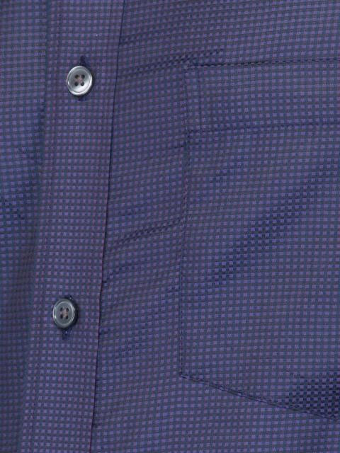 Full sleeves shirt with purple and black checks made of 100% polyester, has a patch pocket on the left chest, a full length buttoned placket and a slightly curved hemline