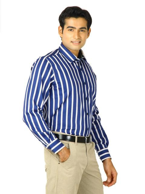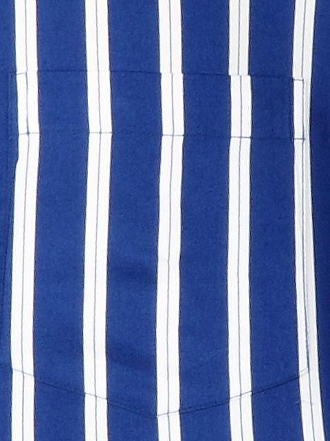 Royal blue full sleeves shirt with white stripes, made of 100% cotton, has a patch pocket on the left chest and full front buttoned placket