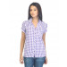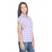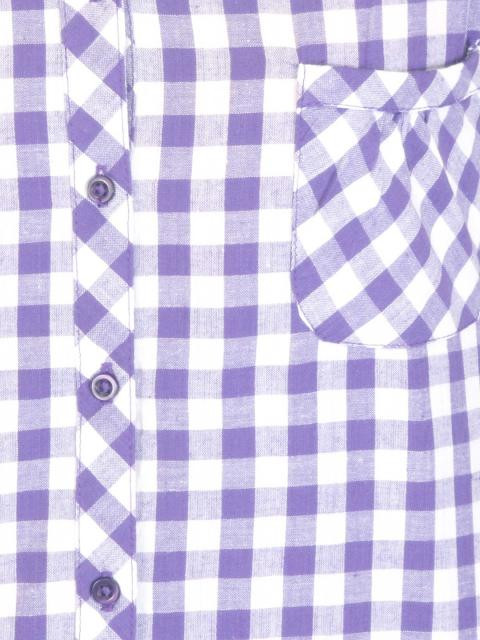 Purple and white check shirt made of 100% cotton, has a spread collar with a V-neck, short sleeves, full buttoned placket and a pocket on the left chest