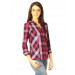 Checked shirt with extended sleeves, made of 100% cotton, that has pink, red, black and grey checks with green accents, and a full-length buttoned placket