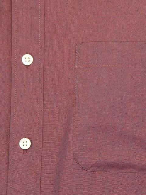 Purple full sleeved shirt, made of 100% cotton, has a patch pocket on the left chest, full length buttoned placket and brand initials embroidered on the right cuff
