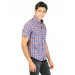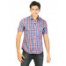 Red and blue checked shirt with white accents, made of 100% cotton, is half-sleeved with a chest pocket on the left, a full length buttoned placket and a curved hemline