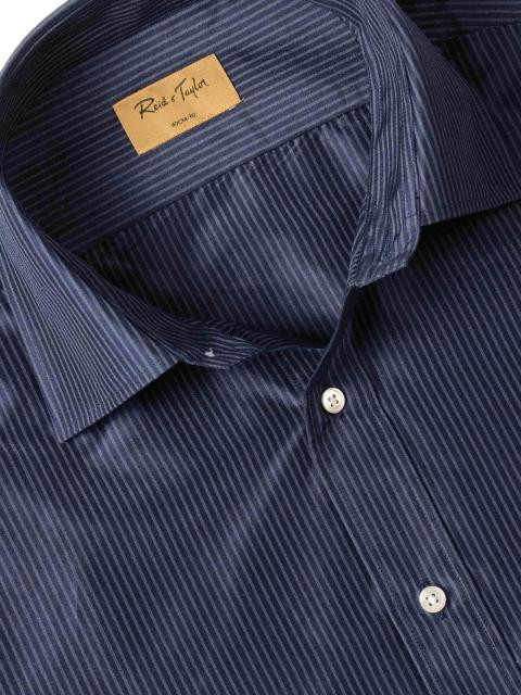 Reid & Taylor Men Stripes Blue Shirts
