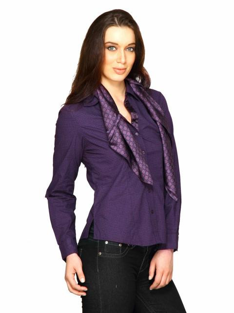 Slip into style with ease in this purple scarf shirt from scullers. The contoured seams and the full arm sleeves makes this shirt a great choice for everyday wear. Team it with denims, stilettos and sleek, long earrings for a really cool look.