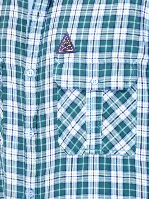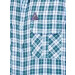 Green and blue plaid checked full sleeves shirt with black accents, made of 100% cotton with a 100% cotton lining, full length buttoned placket with a mid-sleeve button flap, brand embroidery on the right shoulder with shoulder panels in fabric, two pockets on the chest, and a brand tab above the right pocket