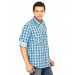 Green and blue plaid checked full sleeves shirt with black accents, made of 100% cotton with a 100% cotton lining, full length buttoned placket with a mid-sleeve button flap, brand embroidery on the right shoulder with shoulder panels in fabric, two pockets on the chest, and a brand tab above the right pocket