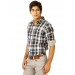 Black, grey and light brown checked shirt with white accents, made of 100% cotton, with full arms and buttoned cuffs, tipped collar, striped inner lining for the collar and cuffs, front buttoned placket and has a pock