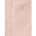 Dull pink shirt with a cut away collar, has a buttoned placket, short raglan gathered sleeves, patch pocket on left side with button
