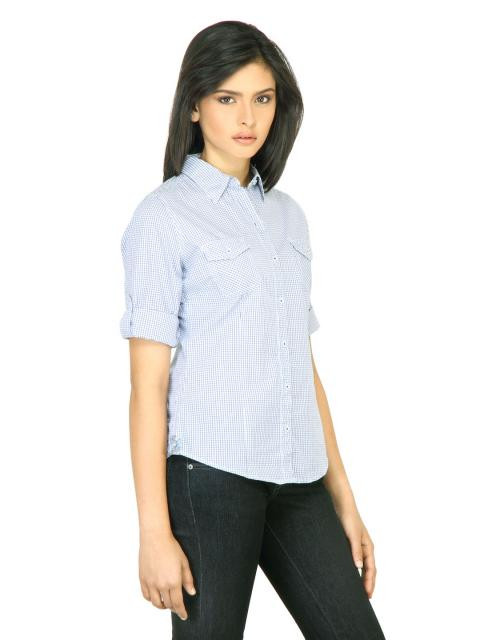 wrangler has been clothing the world since 1947 and they're showing no sign of slowing down – this stylish shirt with its cowboy styling is kept feminine with three quarter length sleeves and a slim collar, while the cotton fabric keeps you fresh and comfortable all day. Team this with jeans and leather shoes for a cowgirl look.