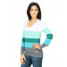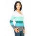 White,green, blue and grey striped sweater made of 100% cotton, has a round ribbed neck, long raglan sleeves with ribbed cuffs and brand logo embroidered on the ribbed hem