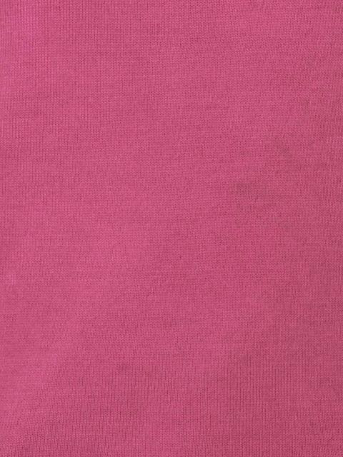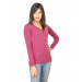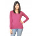 Pink V-neck sweater made of 100% acrylic, has full sleeves with ribbed cuffs and a ribbed hem