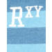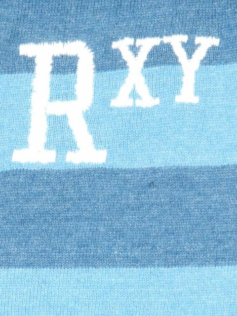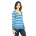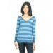 Blue striped sweater, has a deep V-neckline, long sleeves with ribbed hem, holes along the arm for ventilation, stitch detail along the front, embroidered branding on the left chest and vented and ribbed hem